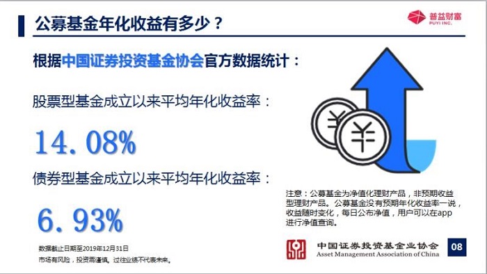 在投資的過程當中呢,其實咱們最關心的問題之一就是關于它的收益怎么樣,上面呢,有一張圖片這個呢,是根據中國證券投資基金業協會官方數據統計出來了,因為這個數據是非常具有權威性的,那么他統計來統計出來的呢,是股票型基金,它從成立以來平均年化收益率達到了14.08%,債券型基金呢,它從成立以來平均年化收益率呢,達到了6.93%吶,剛剛給大家。簡單的介紹什么是公募基金的時候,說了四個角色,就是基金管理人基金托管人,還有咱們投資者,當然還有呢,今天呢,咱們就來再說一下它的這個基本結構,那首先基金管理人就是咱們所說的這些專業的人士,分為公募基金管理公司私募基金管理公司。